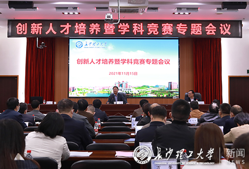 11月15日下午,云顶国际vip8866创新人才培养暨学科竞赛专题会议在云塘校区一办公大楼九楼会议室召开。校长曹一家,学工部(处)、教务处、团委、评估中心、信息化中心和创新创业学院等相关部门负责人,各教学学院分管教学工作、实验室建设工作、学生工作的负责人参加。会议由副校长刘朝晖主持。
