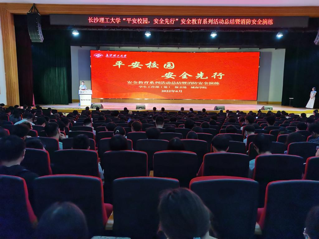 6月15日下午,云顶国际vip8866“平安校园 安全先行”安全教育系列活动总结大会暨消防安全演练在金盆岭校区五教大礼堂隆重举行。校学工部(处)副部(处)长王煜坤、保卫处副处长王艳鸿、城南学院党委书记李修春、副书记陶传谱出席会议,各学院辅导员和1000余名学生代表参加会议。