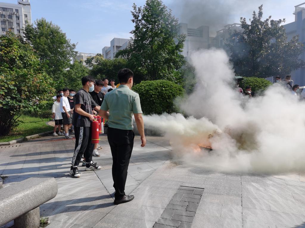 最后,普消消防安全宣传服务中心教官以《落实消防责任 防范安全风险》为题作了专题讲座,并现场指导师生进行逃生疏散和灭火演练。疏散过程中在场老师各负其责、迅速组织,学生听从指挥、撤离有序。到达指定空地后,教官向师生讲授了如何正确使用消防器材,现场同学踊跃参与,在教官的组织下开展了灭火实操演练。
