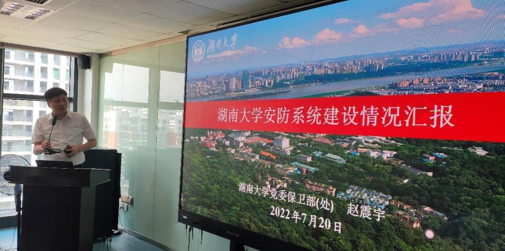 会上,湖南大学党委保卫部(处)副部(处)长赵震宇结合学校整体环境介绍了安防系统建设情况,并就学校安防建设未来发展方向进行了交流。湖南信息学院保卫处处长陈强以智慧安防建设为主题作了经验分享。张小兵向与会人员详细解读了湖南省地方标准《学校治安反恐防范要求》,针对全省保卫管理员和保安员职业技能竞赛相关内容进行了说明。海康威视数字技术股份有限公司应邀就高校安防物联网及物信融合方案成功案例作了分析报告,为湖南高校技防建设注入新动能。随后,与会人员围绕高校技防建设工作中的难点和热点问题进行了深入地探讨,现场气氛热烈。