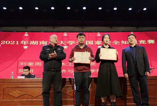 大会对此次安全知识竞赛取得良好成绩的学院和个人进行表彰。本次竞赛学校有18455人参加,参与率69.63%。其中,数统学院、化学学院、能动学院、汽机学院、法学学院获得优秀组织奖。刘奎周、陈妍获得省一等奖;胡思羽、李月萌、陈雨沛、何舒怡、邓倩获得省二等奖;张梁、蒋赛、钟美婷、杨玉婷获得省三等奖。有10位同学获校一等奖,15位同学获校二等奖,25位同学获校三等奖。