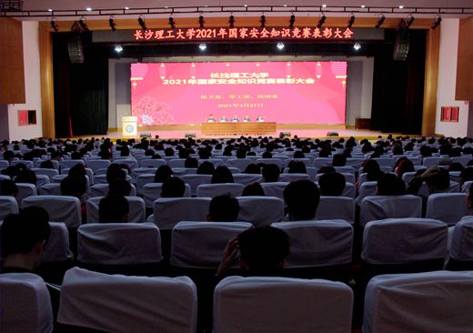4月27日,云顶国际vip8866在金盆岭校区五教大礼堂举行大学生国家安全知识竞赛表彰大会,保卫处处长张祎、学生工作部部长邱国良、副部长贺良、校团委副书记陈璐莎及2020级学生参加了此次会议,会议由保卫处副处长高顺利主持。
