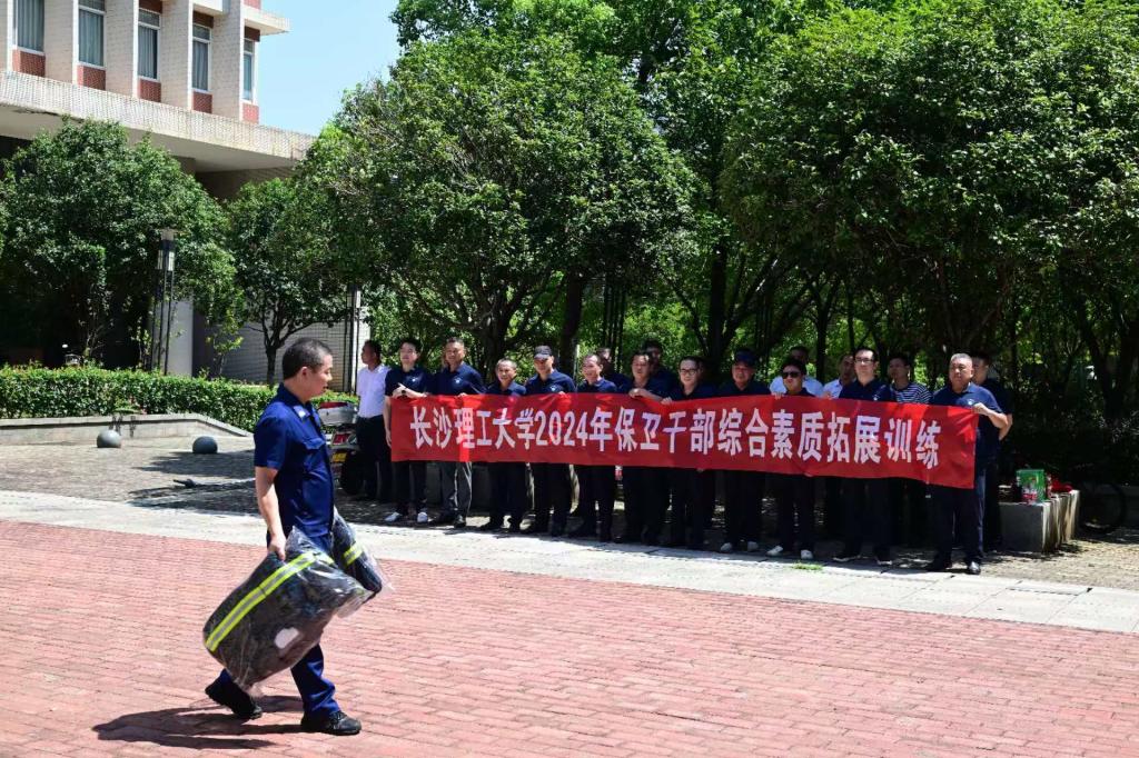 本次培训采取理论学习和实战演练相结合的方式进行。在理论培训环节,宋凡为全体学员进行反恐防暴、防范电信诈骗等知识培训,湖南省新蓝盾保安服务公司培训部部长汤俊龙进行安保业务技能培训,长沙市天心区消防救援大队资深火调员伍交荣进行消防安全专题培训。在实战演练环节,全体保卫人员在教官的指导下,重点围绕反恐防暴、消防安全等方面开展演练,通过模拟真实场景,进行了钢叉、盾牌、消防器械等设备的使用训练,切实提升了保卫队伍应对突发事件的快速反应和应急处置能力。
