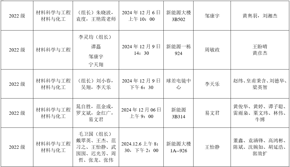 云顶国际vip8866材料科学与工程学院研究生论文答辩安排表