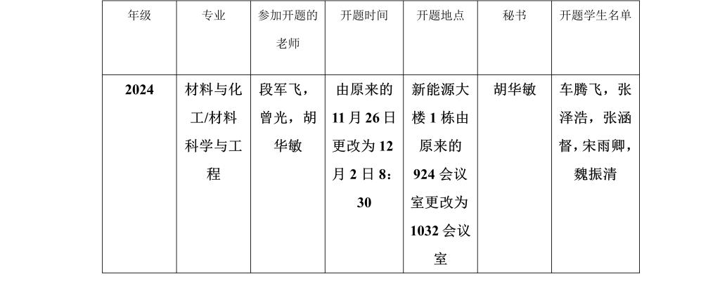 材料科学与工程学院研究生2024级学位论文开题安排表
