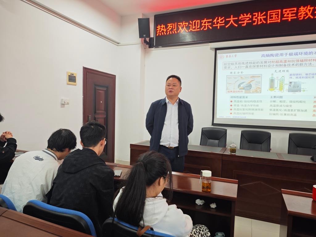 2024年11月1日上午,东华大学教授、博导张国军应邀在新能源大楼1A-908开展学术报告,材料学院部分师生参加,院长毛卫国主持会议。