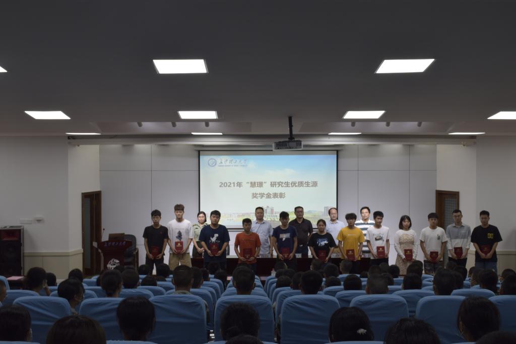会议第二阶段,毛卫国院长宣读了《材料学院关于表彰2021研“慧璟”研究生优质生源奖学金的决定》,并为何张龙等二十四名学生颁发“慧璟”研究生优质生源奖学金。