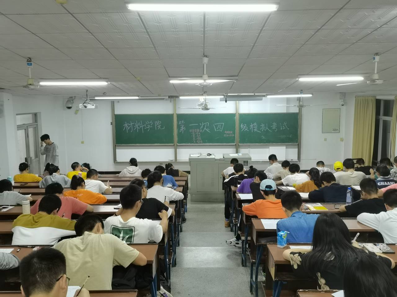 为了提高学生的英语水平,让学生能尽快熟悉四级考试的题型,2020年11月18日,材料学院在金盆岭校区十二号教学楼515、518室开展了第一次四级模拟考试。此次活动由团委学生会学习部组织,由新生班助及学习部成员监考,20级全体学生参与考试。