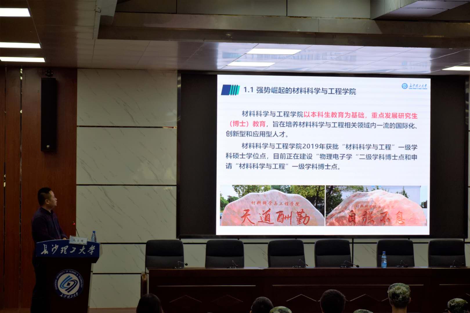 9月30日下午,材料学院院长毛卫国教授在金盆岭四教报告厅为2020级全体新生讲授“新生第一课”。
