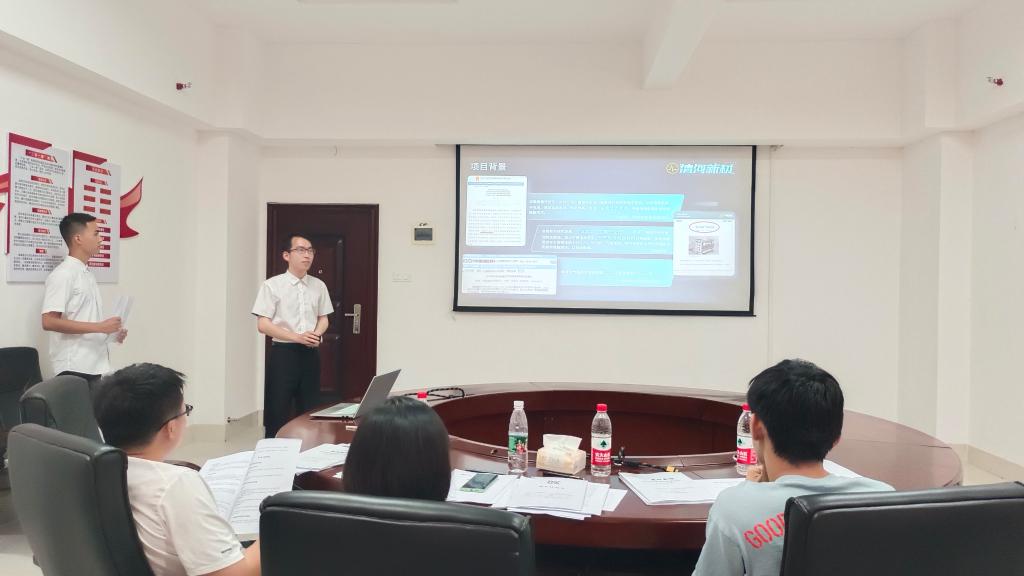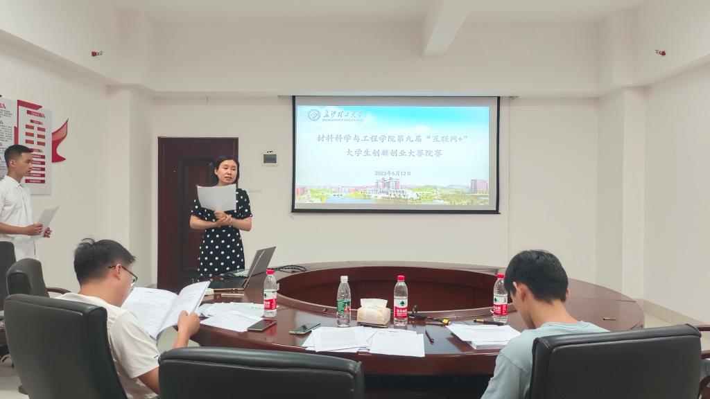 6月12日,材料学院于新能源一号楼306会议室举办了第九届“互联网+”大学生创新创业大赛院赛。本次答辩由学院党总支副书记陈华书记、学院专业教师李富进、学院分团委书记王志亮担任评委,共7个项目团队参加答辩。