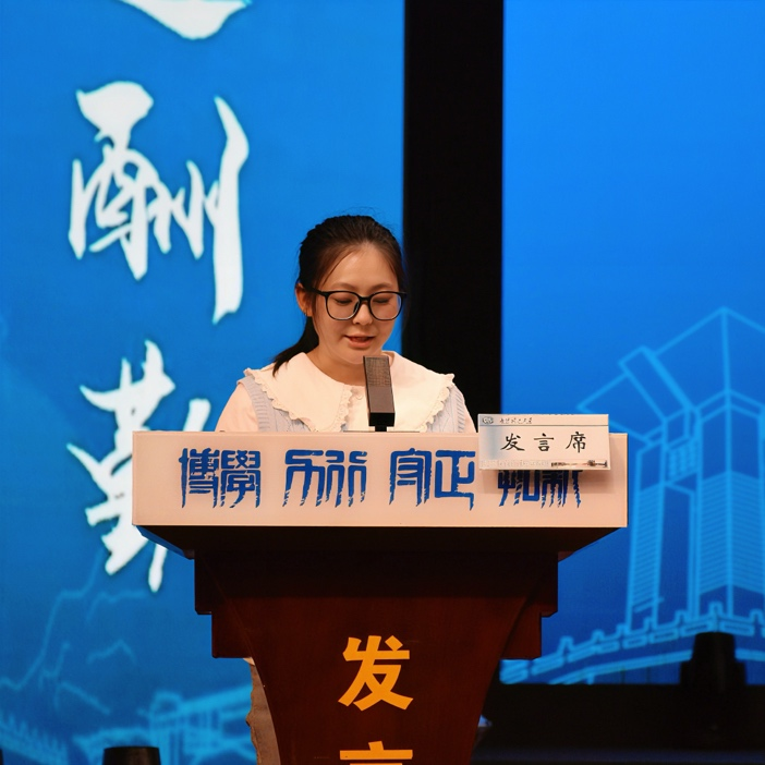 新能源2201班汤锦妍作为在校生代表分享了自己从初入校园时的迷茫,到在一次次实践中逐渐明确专业方向的成长经历。她讲到自己在第一次组装电池的过程中体会到了实践的乐趣;在科研课题中遇到挫折时,是导师的耐心指导让她坚持不断试错与反思,最终获得一些成果,成功获得保研资格。她鼓励学弟学妹们勇于尝试,积极走进实验室,将个人所学与国家在材料领域的重大需求紧密结合,心怀热爱,勇担使命。