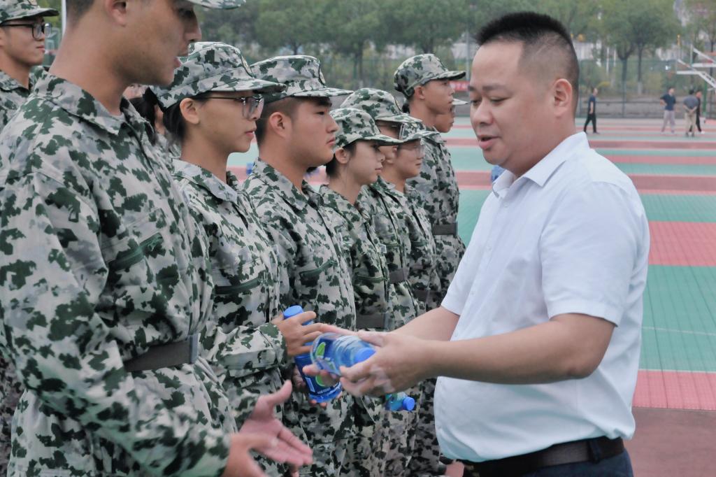 毛卫国还代表学院为全体教官及军训负责人送上慰问饮品,并叮嘱要科学组训、劳逸结合,保障军训安全与实效,让同学们真正从训练中受益、在挑战中成长。