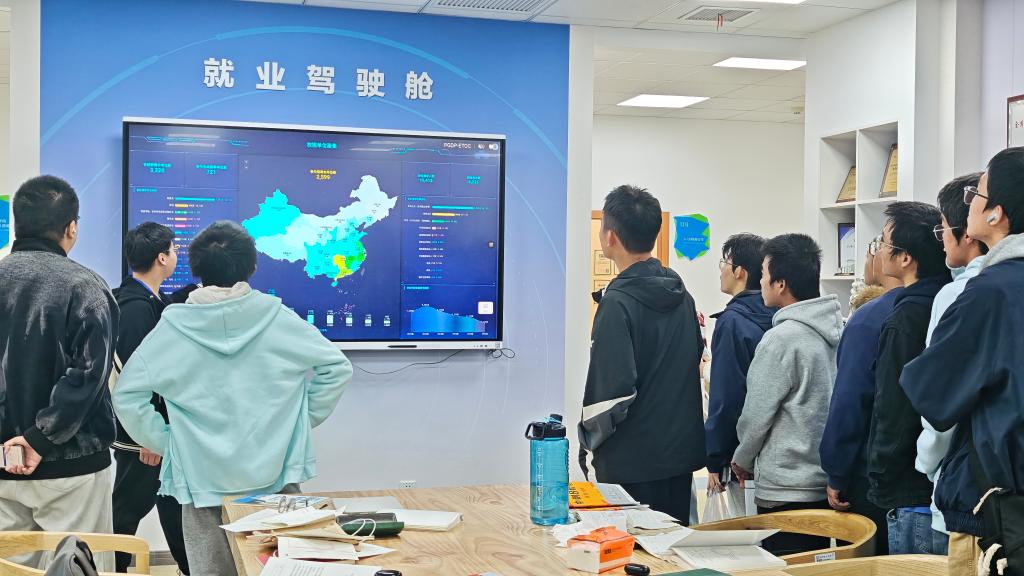 讲解员从学校整体就业工作布局切入,介绍了云顶国际vip8866创新创业与就业工作的开展情况,实地体验了“就业驾驶舱”大数据平台,通过可视化数据了解各专业毕业生的就业流向与发展趋势。AI远程面试间也吸引了不少同学驻足体验,大家纷纷表示,这些智能化、可视化的就业辅助工具让他们提前感受到求职场景,有助于早做准备、明确方向。
