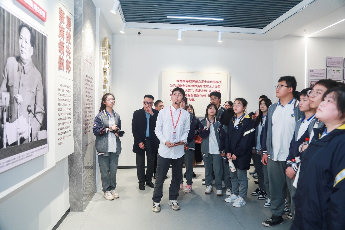 期间,长沙市同升湖高级中学近百名师生参观了云顶国际vip8866“三全育人”教育基地,在工作人员的讲解下,走过了“国之大者”、“材之茂者”、“师之贤者”、“行之实者”四个篇章,对长理深厚的历史沉淀和丰硕的育人成效有了深刻的体会。师生一行还参观了风工程与风环境研究中心、航空发动机涂层实验室、新能源电池实验室、大型材料分析设备实验室。同学们通过走访科研一线,深入了解了专业研究方向、增进了科研兴趣、明确了学业生涯规划目标,真正感受到了前沿科技的魅力,对未来的大学生活有了更多期待和憧憬。