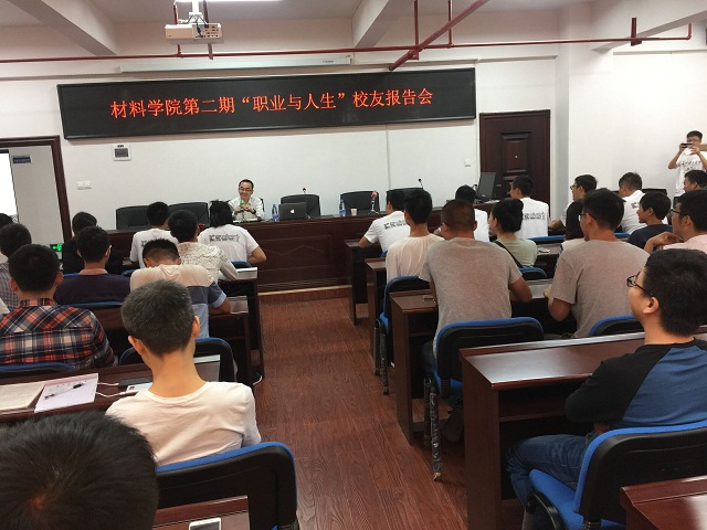 10月9日下午13:00,值云顶国际vip8866六十周年校庆之际,材料学院举办第二期“职业与人生”校友报告会。主讲人为中国建筑陶瓷博物馆馆长、广东唯美陶瓷有限公司总经理、硅酸盐专业99届校友朱红宇,材料学院党委副书记张国强、专业教师夏青出席,学工办唐青老师主持,一百余名在校生参加。