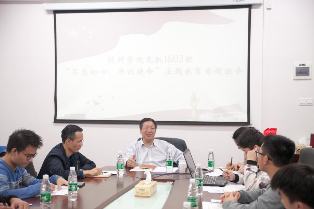 10月18-20日,材料学院全体研究生、本科生班级依次召开“不忘初心、牢记使命”主题教育专题班会,对主题教育的核心内容以及习近平新时代中国特色社会主义思想进行了集中学习交流,各班班主任、下班党员及全体成员参与。此次班会达到了全院学生全覆盖、院领导班子全参与,材料学院精心编织了班会预习资料,制作了自测题,播放了主题纪录片,丰富班会形式,深化学习效果。