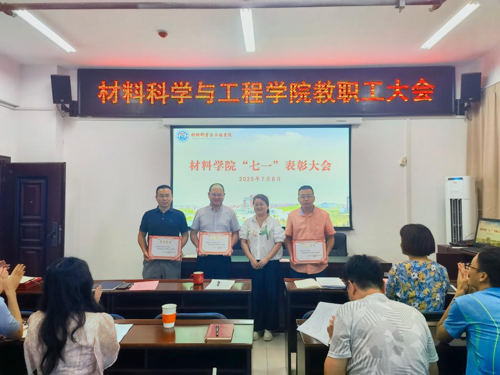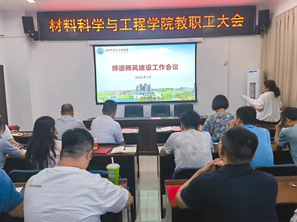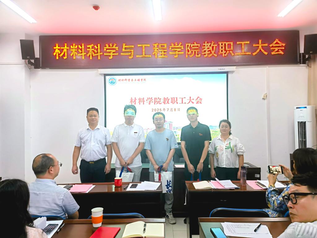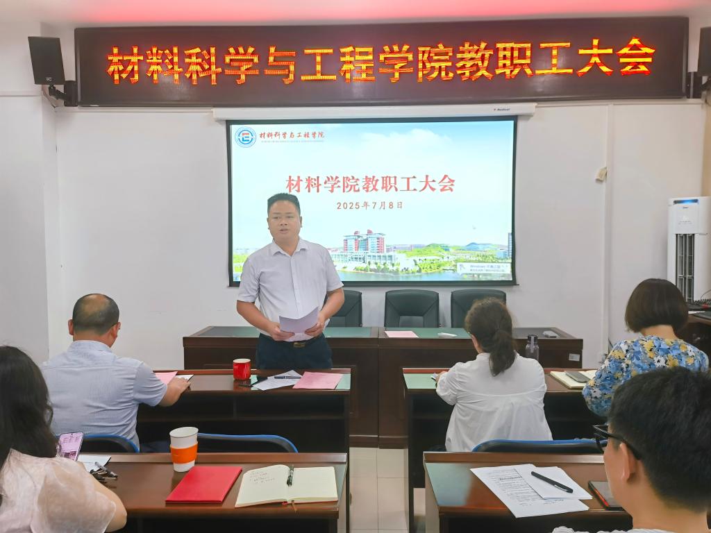 7月8日下午,材料科学与工程学院在能源大楼1栋908召开全体教职工大会,会议由院长毛卫国主持。