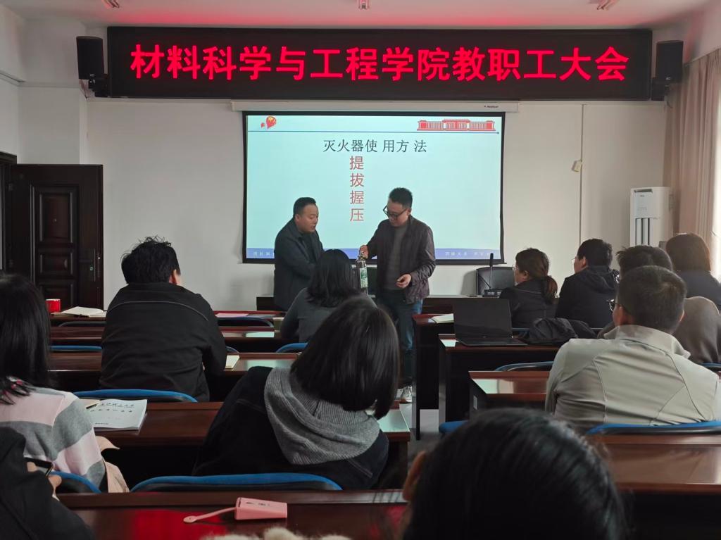为深入贯彻落实校园安全管理要求,进一步提升师生安全意识与应急处置能力,11月4日下午,我院在新能源大楼1栋908会议室组织召开实验室安全工作会议暨消防安全培训,全院教职工参加此次培训。
