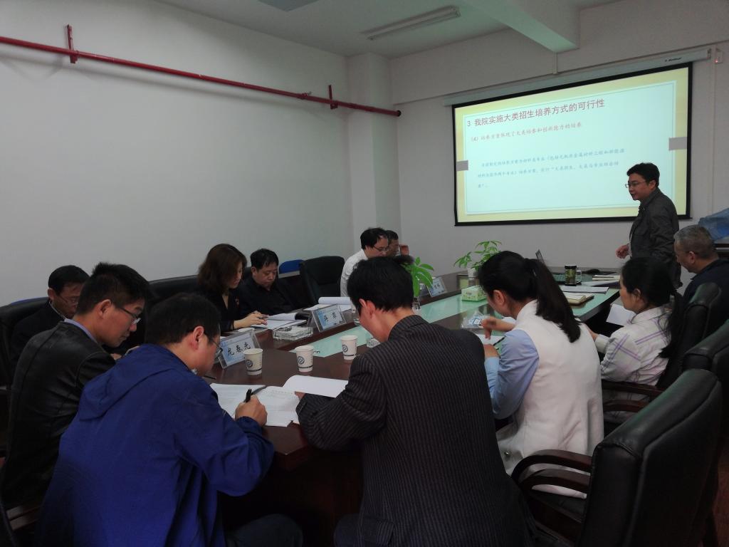 首先,晁自胜对我院专业建设情况作了总体阐述。目前我院有两个专业:无机非金属材料工程和新能源材料与器件。因为时代的发展和材料类专业的属性,2018年本科学生的招生,我院正在规划材料类专业大类招生,请各位专家给予论证。