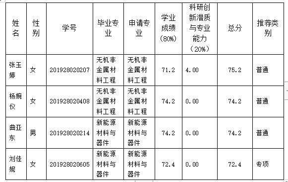 现予以公示,公示期为2022年9月16日至2021年9月18日。如对以上名单有异议,请实名与材料科学与工程学院教务办联系,联系电话:0731-85258487,联系人:李老师,电子邮箱:851187698@qq.com。