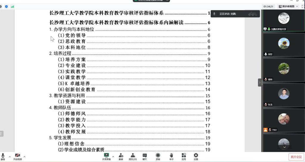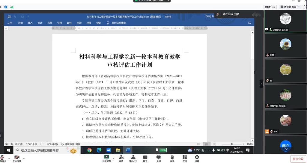 为迎接教育部新一轮本科教育教学审核评估,12月20日下午3:30,无机非金属材料工程系召开线上会议,就《云顶国际vip8866新一轮本科教育教学审核评估工作方案》、《材料科学与工程学院新一轮本科教育教学审核评估工作计划》等相关文件开展学习研讨,会议由系主任刘鹏主持,全系教师线上参会。会上,刘鹏首先介绍了学校印发的审核评估工作方案。随后,刘鹏结合无机非金属系已经开展的工程教育认证工作,对审核评估中的指标体系进行了分项解读,并依次就学院自评结果进行了说明。
