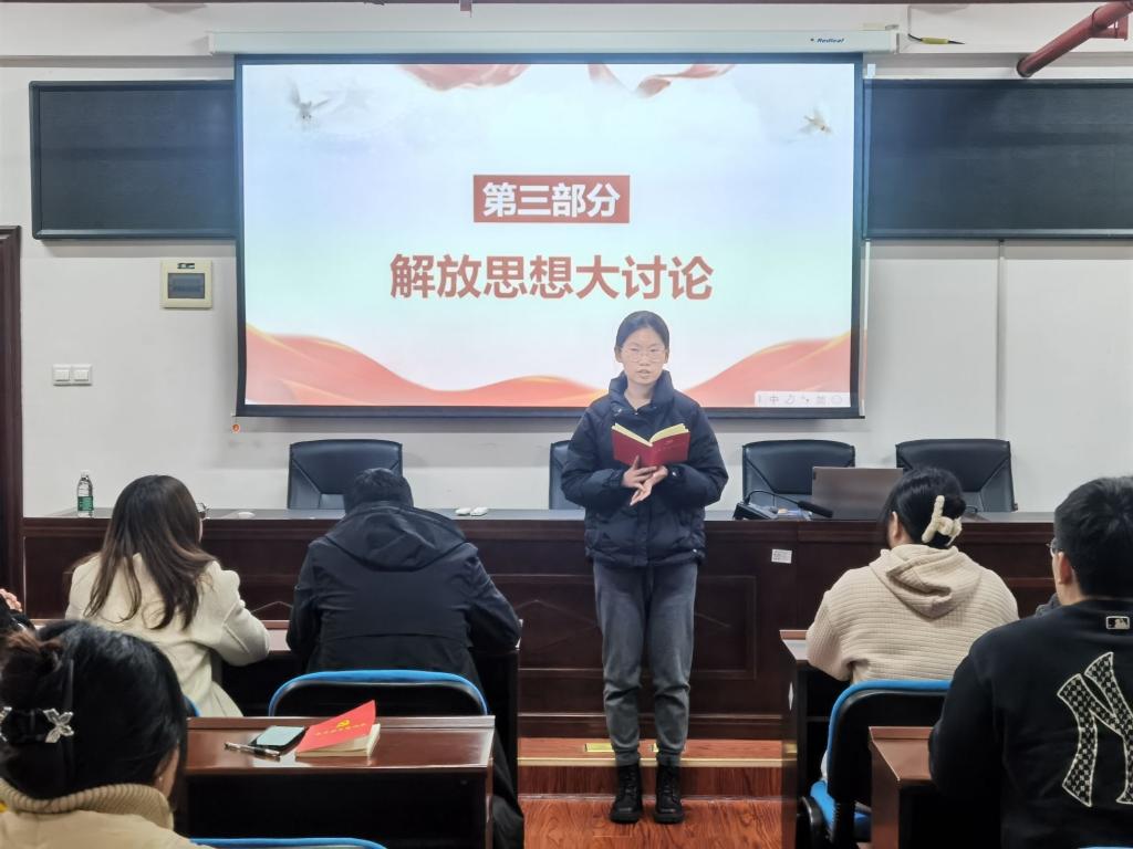 随后,支部同志观看了《春之声——习近平总书记出席2024年全国两会纪实》专题片,通过对习近平总书记参加二〇二四年全国两会的讲话的学习,党员同志们对如何因地制宜发展新质生产力、加快推进祖国统一进程有了深入的理解和体会。影片结束后,党员同志结合自身实际,并围绕解放思想必须坚定不移加强干部能力素质和作风建设进行解放思想大讨论。