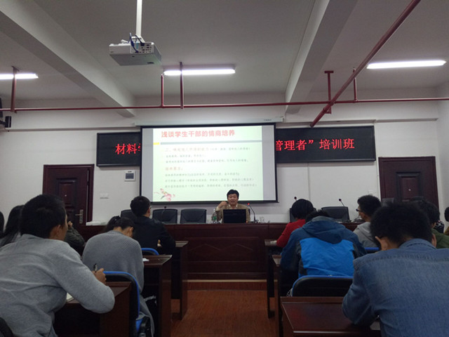 10月25日下午三点,材料学院首期学生干部培训班的第二堂培训课在新能源大楼一栋302成功举办。参加本次培训班的有材料学院团学会全体成员以及材料学院各班班委,校招生就业处邹兴平处长为学员们带来了题为“浅谈学生干部的情商培养”的精彩授课,材料学院党委张国强副书记主持。