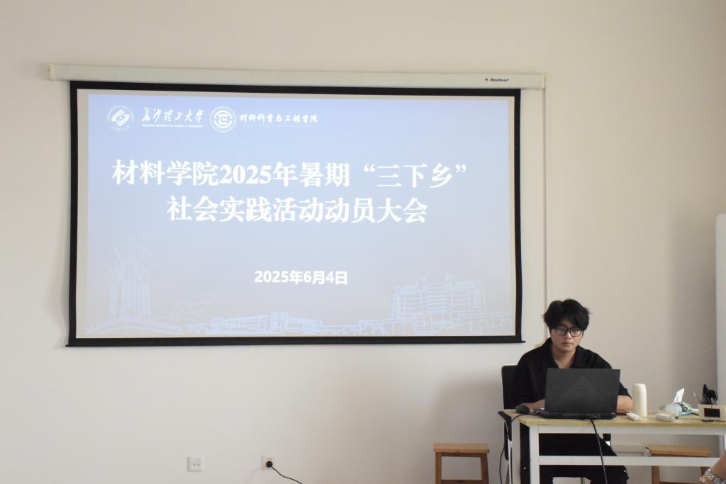 6月4日中午,材料科学与工程学院于云塘校区新能源一号楼804会议室举办2025年暑期“三下乡”社会实践活动动员大会。学院党委副书记邵巧艳、党建辅导员谭方林、分团委书记李心怡出席此次会议,团学会轮值主席刘泽宇主持,学生干部31人参加。