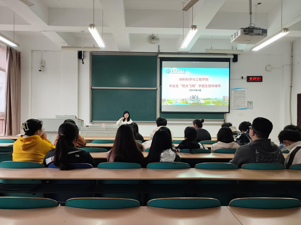 材料学院于3月14日在云塘校区工科三号楼A216召开毕业生“阳光飞翔”学困生团体辅导,学院心理辅导员谢易真主持,以此为2020级学业困难的毕业生提供更好的学业辅导以及就业指导服务。