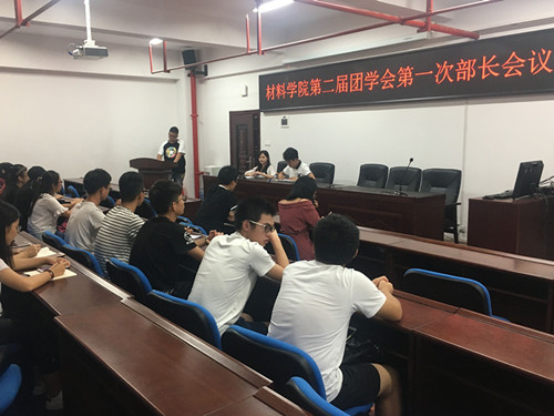 2017年9月6日,材料学院于新能源大楼302教室举行了第二届团学会学生干部骨干会议。学院党委副书记唐青,辅导员谢易真、陈鑫林老师以及团学会各部门部长、副部长参加了此次会议。