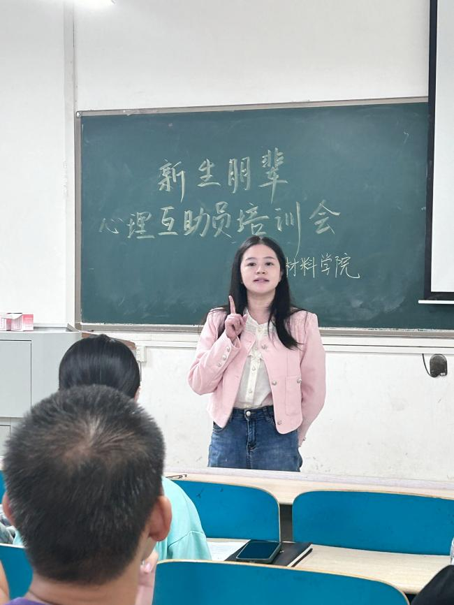 2024年10月9日,材料科学与工程学院于云塘校区文科楼E203室举行了2024级新生朋辈心理互助员培训会。此次会议由心理辅导员谢易真老师担任主讲人,学院全体2024级朋辈心理互助员参会。