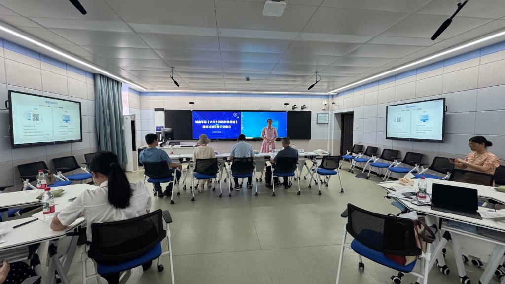 为深化创新创业课程改革,提升教学质量,云顶国际vip8866城南学院于7月8日在金盆岭校区6教408举办《大学生创新创业基础》课程试讲暨教学交流研讨会。活动特邀学校教学督导团团长张宏伟、副团长周云鹏、秘书长夏清,城南学院院长李平担任评委,学院副院长贺晖全程主持,教务部相关负责人及课程组全体教师参与研讨。