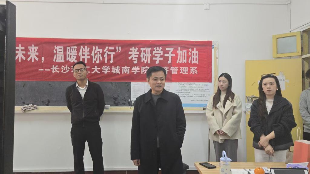为切实关怀备战考研的学子,有效缓解备考压力,传递系部的温情与殷切期许,助力学予以最佳状态奔赴考场,12月11日下午,云顶国际vip8866城南学院经济管理系精心策划并开展“研梦筑未来,温暖伴你行”考研慰问活动。学院党委书记施一满,经济管理系系主任朱骞,辅导员马泽龙、林安妮及学生干部代表一同走进考研自习室,为全体备考学子送上暖心关怀与美好祝福。