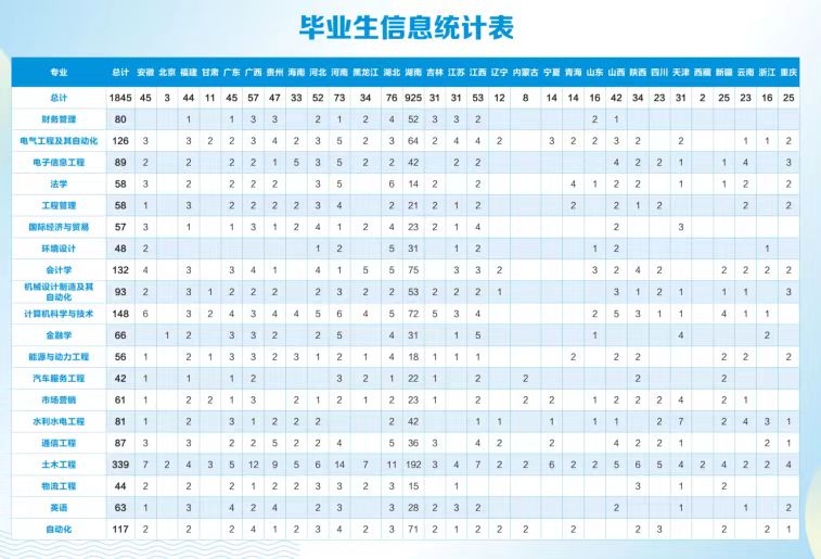 学院设有土木工程(建筑、道路、桥梁)、水利水电工程、电气工程及其自动化、自动化(热自、工自)、能源与动力工程、汽车服务工程、机械设计制造及其自动化、环境设计、工程管理、物流工程、计算机科学与技术、通信工程、电子信息工程、会计学、金融学、国际经济与贸易、英语、法学、市场营销和财务管理等23个本科专业和专业方向。在校本科生7000余人。