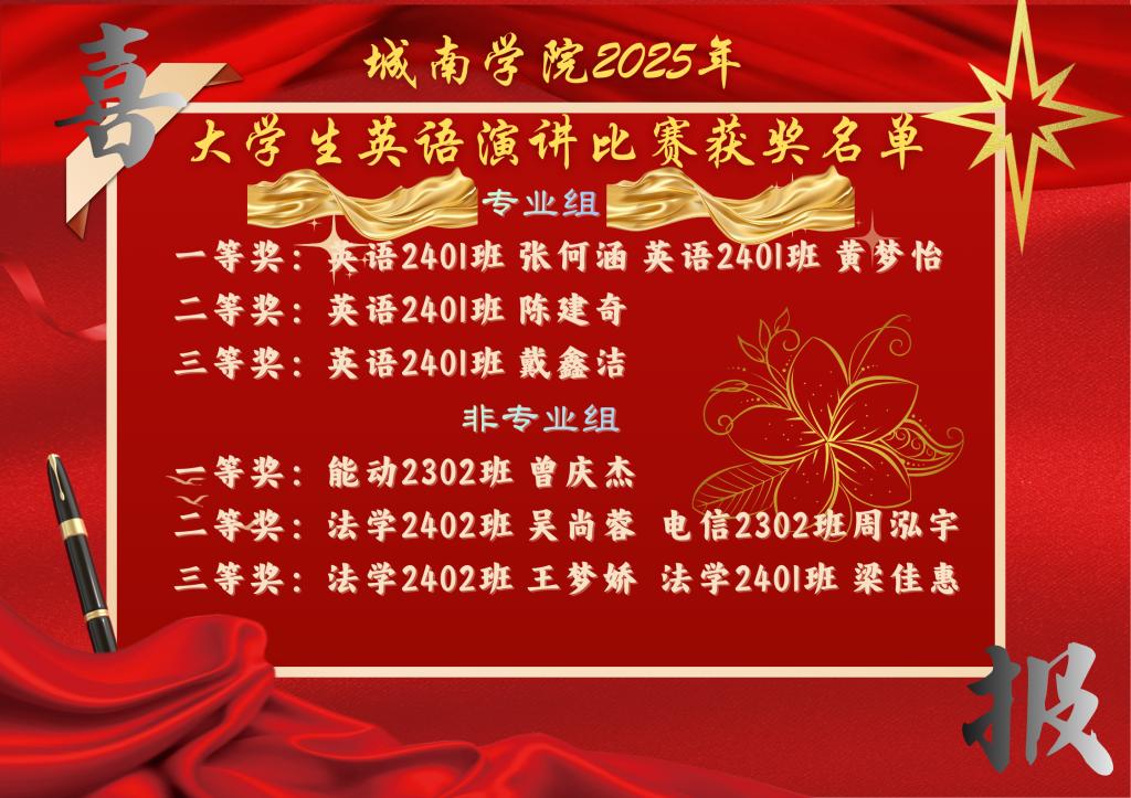经过评委团专业、公正的评审,最终9名同学脱颖而出,分获比赛一、二、三等奖。此次英语演讲比赛,不仅为学子搭建了展示英语能力、交流思想见解的优质平台,更将语言学习与价值引领深度结合,有效强化了学生的家国情怀与时代担当,为学院高素质人才培养工作筑牢了实践根基。愿全体城南学予以此次比赛为契机,永葆对语言学习的热忱,怀揣勇气与责任,在人生新征程中步履不停、续写华章。