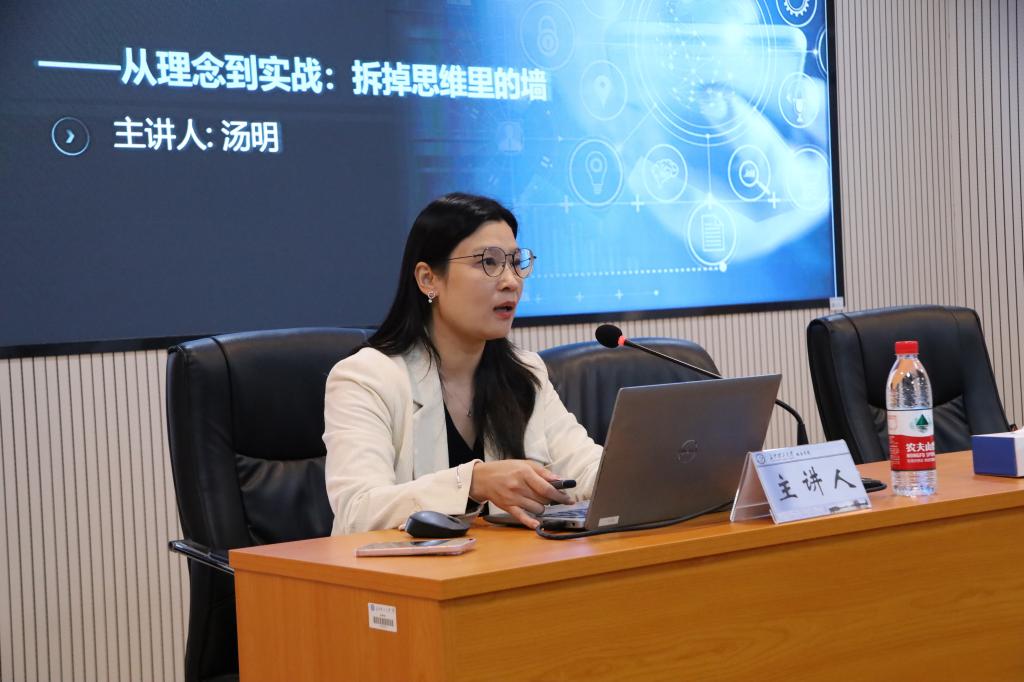 作为湖南省2025年创新教育教学比赛一等奖获奖者,汤明以《如何高质量上好一堂大学生创新创业基础课——拆掉思维里的墙》为题作专场报告。她围绕“破局传统教学困境”核心,提出“三拆思维墙”策略:一是拆掉理念的墙,摒弃“重理论轻实践”的固化认知,强调以“学生创业需求”为核心重构课程目标,将真实商业案例融入课堂;二是拆掉方法的墙,分享“情景模拟+项目驱动”的混合教学法,例如通过“商业计划书实战打磨”等环节,引导学生从“被动听课”转向“主动创造”;三是拆掉评价的墙,建立“过程性评价+成果性评价”双维度体系,将课堂参与度、团队协作力、创意落地性纳入评分标准,全方位激发学生创新潜能。