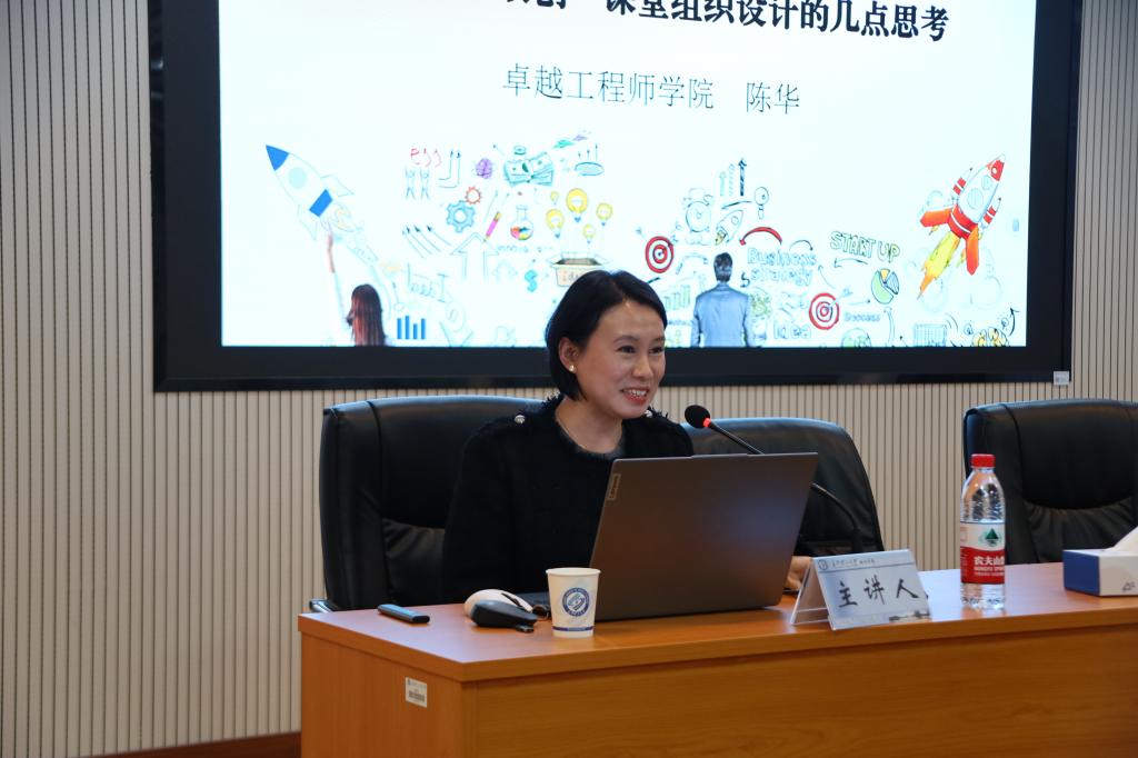 陈华则以《高质量“双创”课堂组织设计的几点思考》为题展开分享。她结合自身多年教学实践,从三方面拆解课堂设计关键:其一,精准调动学生积极性,通过“分组PK制”“创业故事分享会”等形式,挖掘学生兴趣点,例如让学生结合专业背景设计“细分领域创业方案”,增强课程与专业的关联性;其二,优化教学设计逻辑,提出“五步教学法”,以“如何挖掘创业机会”等真实议题为切入点,让理论知识自然融入实践环节;其三,衔接创新创业赛事,详细介绍“课程教学—项目孵化—赛事选拔”的联动机制,分享从课堂中筛选优质项目、指导学生打磨参赛作品的经验,并现场推荐《跟党学创业》《商业模式新生代》(团队篇、个人篇)《人生设计课》等实用书籍,为教师提升课程质量提供资源支持。
