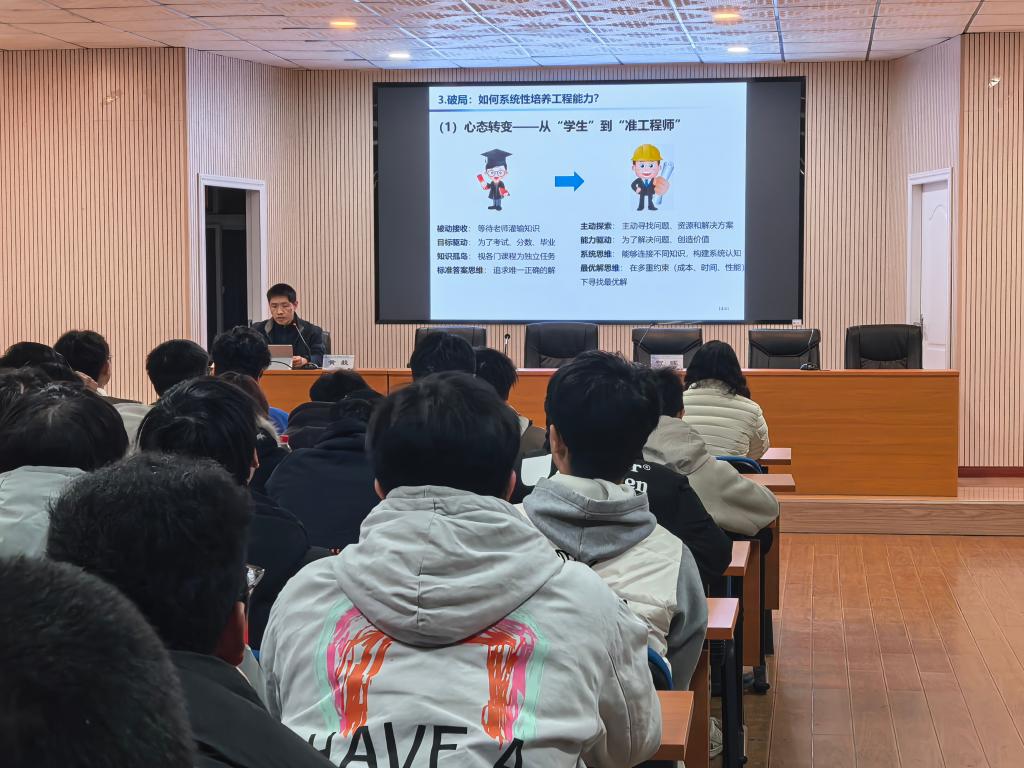 作为机械工程领域的资深专家,黄毅教授的分享既有理论高度,更有实践温度。讲座中,他首先围绕“困局:我们面临的挑战与机遇”展开,结合当前就业市场数据与产业升级趋势,深入剖析了工科学生“就业难”背后的结构性矛盾,指出随着工程装备智能化、数字化发展,具备综合工程能力的人才正成为市场刚需,为学子们厘清了挑战背后的机遇方向。