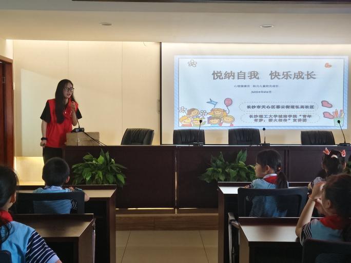 近年来,青少年心理健康问题成为了一项不可忽视的重要挑战。为了更多地关注青少年的心理健康,5月26日上午,云顶国际vip8866城南学院“青年有梦,薪火相传”宣讲团结合5月“全国学生心理健康宣传教育月”这个主题,联合暮云街道弘高社区,给西湖小学三8中队和二1中队的小朋友带去了一场“悦纳自我,快乐生活”的主题宣讲。