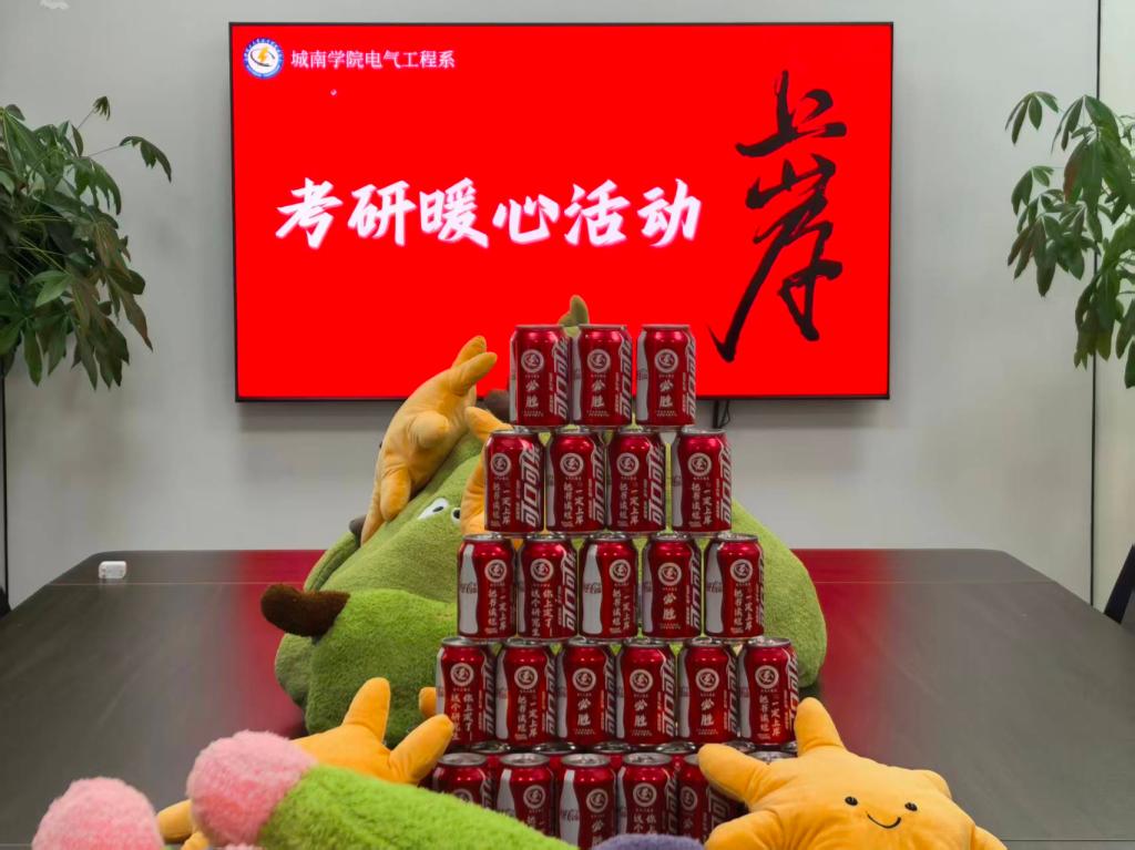 活动最后,系部为每位考研学子送上定制可乐和解压抱枕,可乐瓶身印刻的励志标语既是期许也是祝福。全体师生手持抱枕和定制可乐合影留念,镜头定格下这一温暖瞬间。