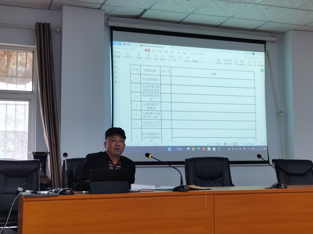 特邀党建组织员宋建社对前期学生党员档案自查情况进行了汇总、分析,针对出现的问题提出了整改方案。靳攀科对党员档案材料的规范进行了强调和说明,对入党程序为参训人员进行了梳理,对支部“三会一课”的开展和记录进行了详细指导。