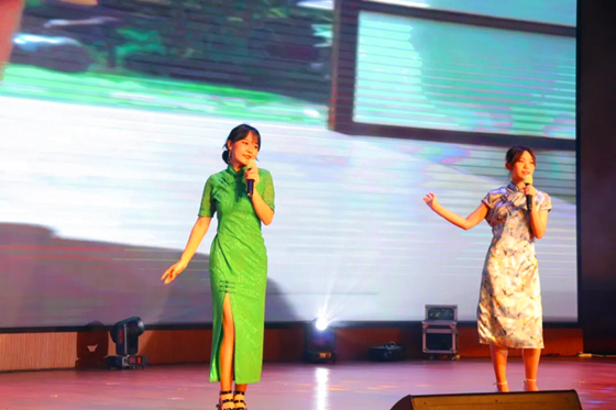《丽人行》走秀中,选手和经管系学生会干部身着旗袍或者身着学生装,婀娜多姿,亭亭玉立,古朴中透露着娇媚,亦或是洋溢着青春的气息,朝气蓬勃。