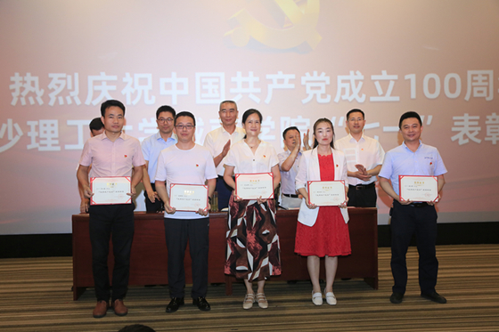 院领导为受表彰的先进集体和个人颁奖。1个教工党支部、2个学生党支部、1名优秀教工党员、2名优秀党务工作者、1名优秀党支部书记和7名优秀学生党员受到学校党委的表彰。8个先进党支部、5名优秀教工党员、4名优秀党务工作者、71名优秀学生个人受到学院党委的表彰。