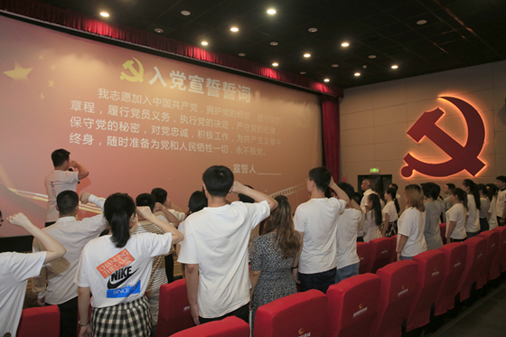 最后,新党员进行入党宣誓,老党员重温入党誓词。