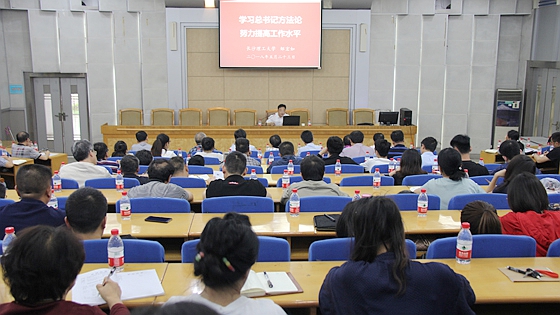 邹宏如以《学习总书记方法论 努力提高工作水平》为题,介绍了习近平新时代中国特色社会主义思想的形成、核心内容以及伟大思想理论形成的宏大背景;阐述了这一伟大思想理论的重大政治意义、重大历史意义、重大理论意义、重大实践意义和重大世界意义;在此基础上结合实际工作,重点就如何学习习近平总书记方法论进行了系统解读,包括树立历史眼光、加强调查研究、确立战略思维、坚持系统思维、坚持人本立场、强化理论思维、培养创新思维、强化底线思维、注重小切口大成效、坚持问题导向、知行合一、钉钉子精神、分类指导、典型引路、培养“三分法”思维等15个方面。他要求在座的每一位共产党员都要立足自己的工作岗位,善于运用发展的远大目光,奋发有为,为学校的各项建设做出应有的贡献。