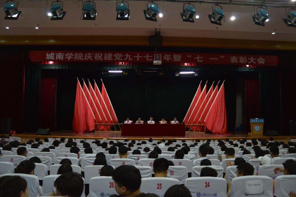 6月29日下午,城南学院在金盆岭校区五教大礼堂隆重召开庆祝建党九十七周年暨“七•一”表彰大会。城南学院师生党员和入党积极分子800余人与会,大会由城南学院党委副书记王明彦主持。