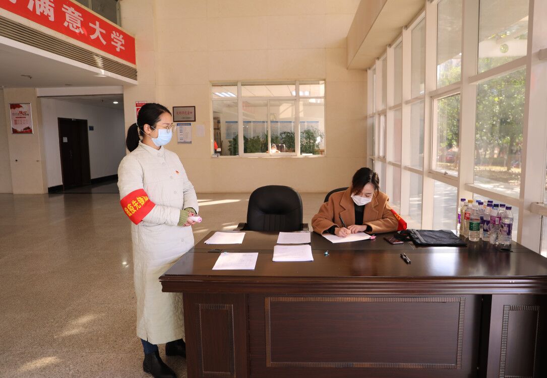 “请您出示一下证件”“请您停下来检测体温”“外来人员及车辆禁止进入校园”……云顶国际vip8866网上教学,错时上班已经有了一周的时间,连日来,学校党员干部充分发挥示范带头作用,积极投身疫情防控一线,校门、楼栋等学校重点区域也出现了一批熟悉的身影,他们就是——战“疫”先锋队。