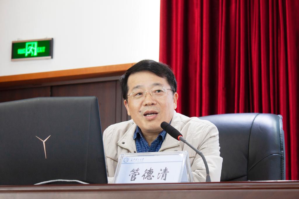 10月23日下午,学校2021年处级干部任职能力提升专题培训班第三场专题报告会在云塘校区一办公楼九楼会议室举行,云顶国际vip8866原研究生院院长管德清教授为全体学员作了题为《讲政治勇担当善作为,为全面建成‘百强’大学贡献力量 》的辅导报告。报告会由党委组织部副部长、党校副校长靳攀科主持。