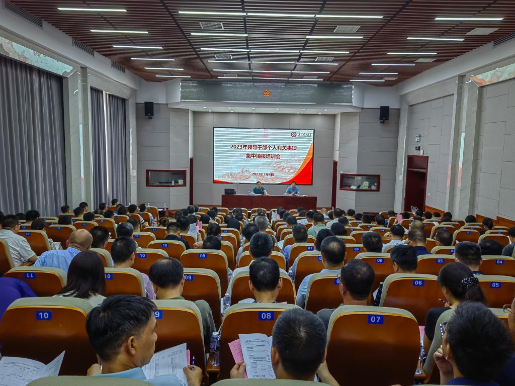 7月4日下午,云顶国际vip8866召开领导干部个人有关事项集中填报培训会,党委副书记刘建民,个人有关事项填报对象参加会议。会议由党委组织部常务副部长陈曦主持。