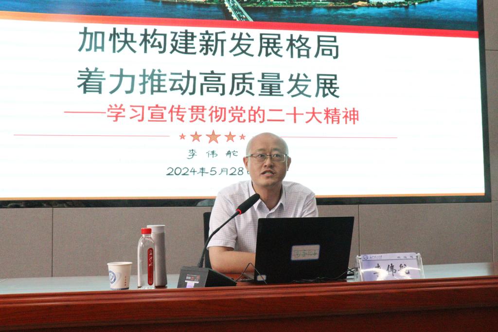 随后,培训班举行了第一课。省委党校(湖南行政学院)李伟舵教授以《加快构建新发展格局,着力推动高质量发展》为题,从高质量是中国式现代化的首要任务、新发展格局是中国式现代化的路径选择、现代化经济体系为高质量发展提供动力三个方面出发,结合大量实际案例,就如何推动经济社会高质量发展进行了深入分析阐述,让大家深刻理解了全面建设社会主义现代化国家的首要任务,新发展阶段、新发展理念、新发展格局的深刻内涵、逻辑关系和重大意义。